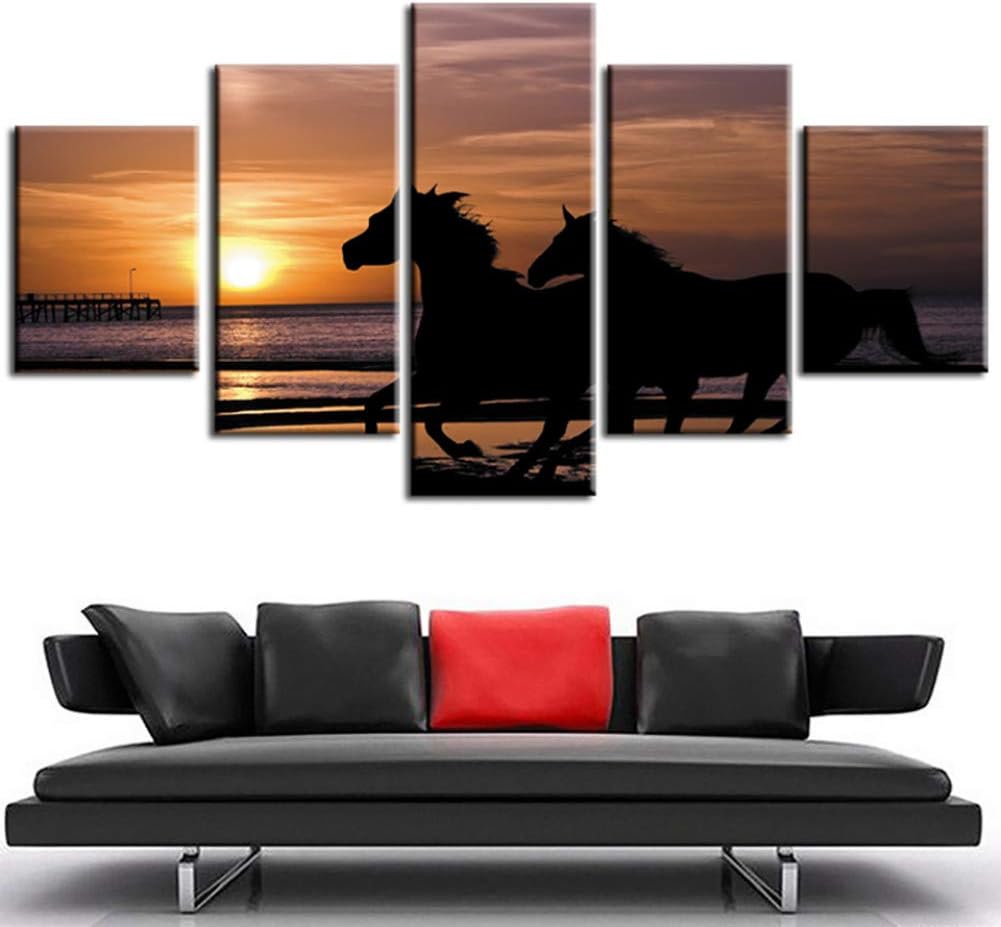 Amazon.com: MONDFH 5 Consecutive Paintings Canvas Print HD Modern Painting House Decor 5 Panel Sunset Running Horses Frame Wall Art Poster Modular Room Pictures: Posters & Prints
